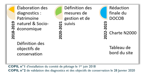 Les éléments de diagnostic ainsi que les objectifs à long terme du futur DOCOB ont été validés lors du second COPIL, le 28 janvier 2020.