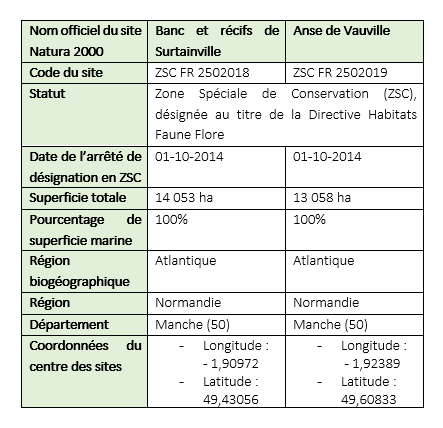 Fiche d'identité des sites "Banc et récifs de Surtainville" et "Anse de Vauville"